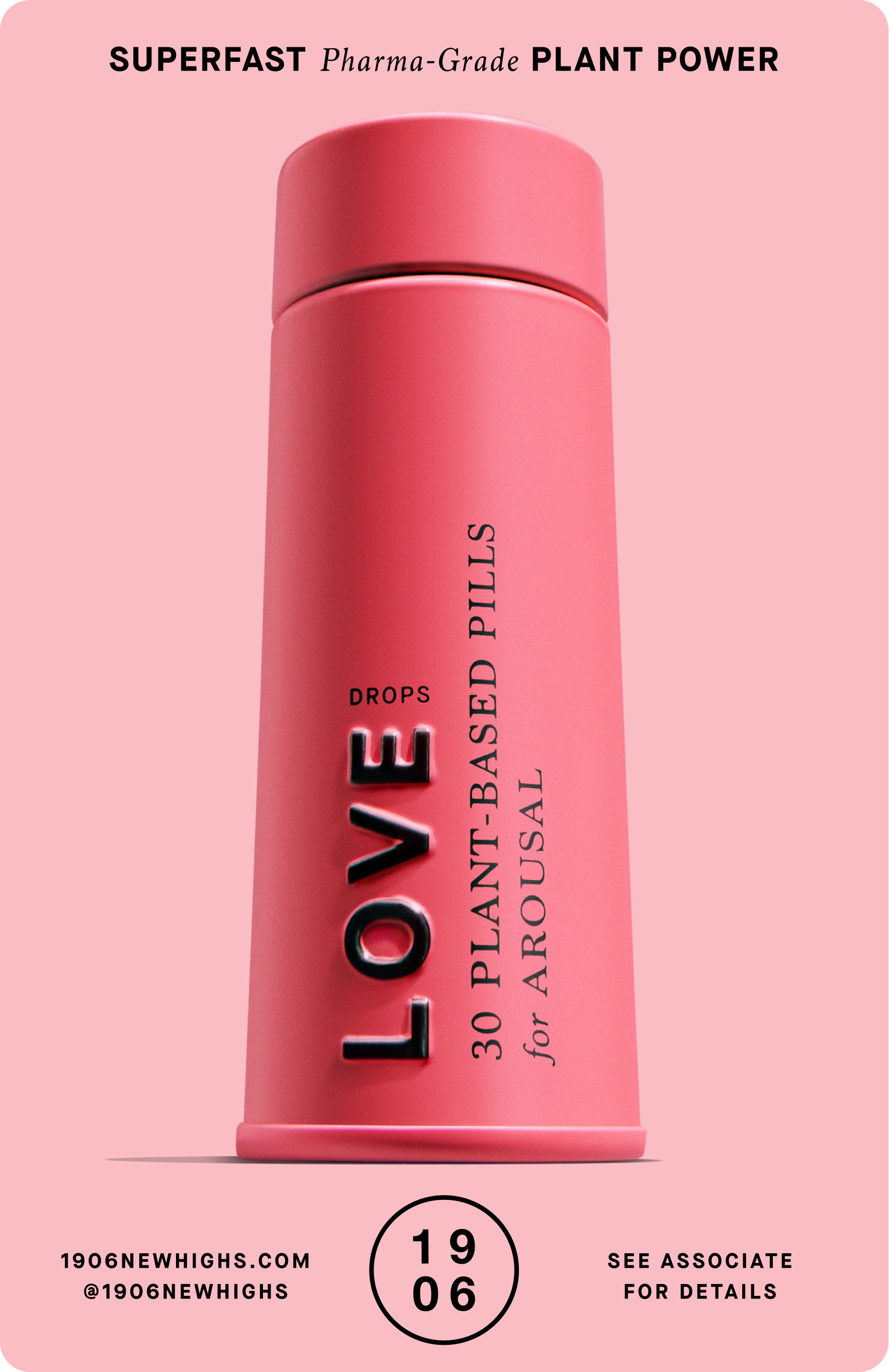 Campaign design and merchandise for the modern cannabis brand 1906. LOVE is the world’s first equal-opportunity aphrodisiac. It’s formulated to work equally well on all genders. Love increases blood flow, boosts lubrication, diminishes inhibition and improves sexual stamina.